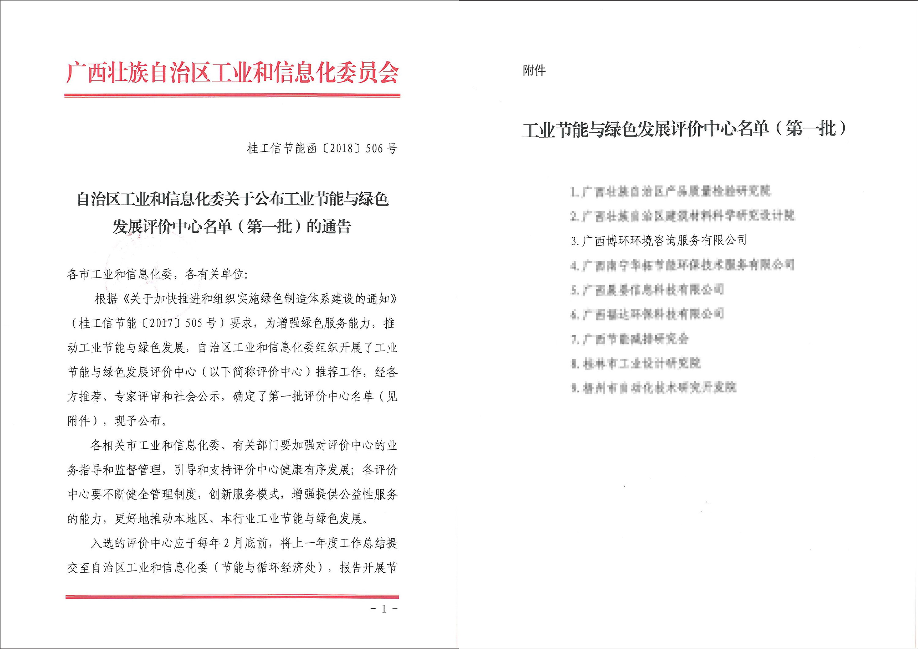 、廣西工業(yè)節(jié)能與綠色發(fā)展評價中心