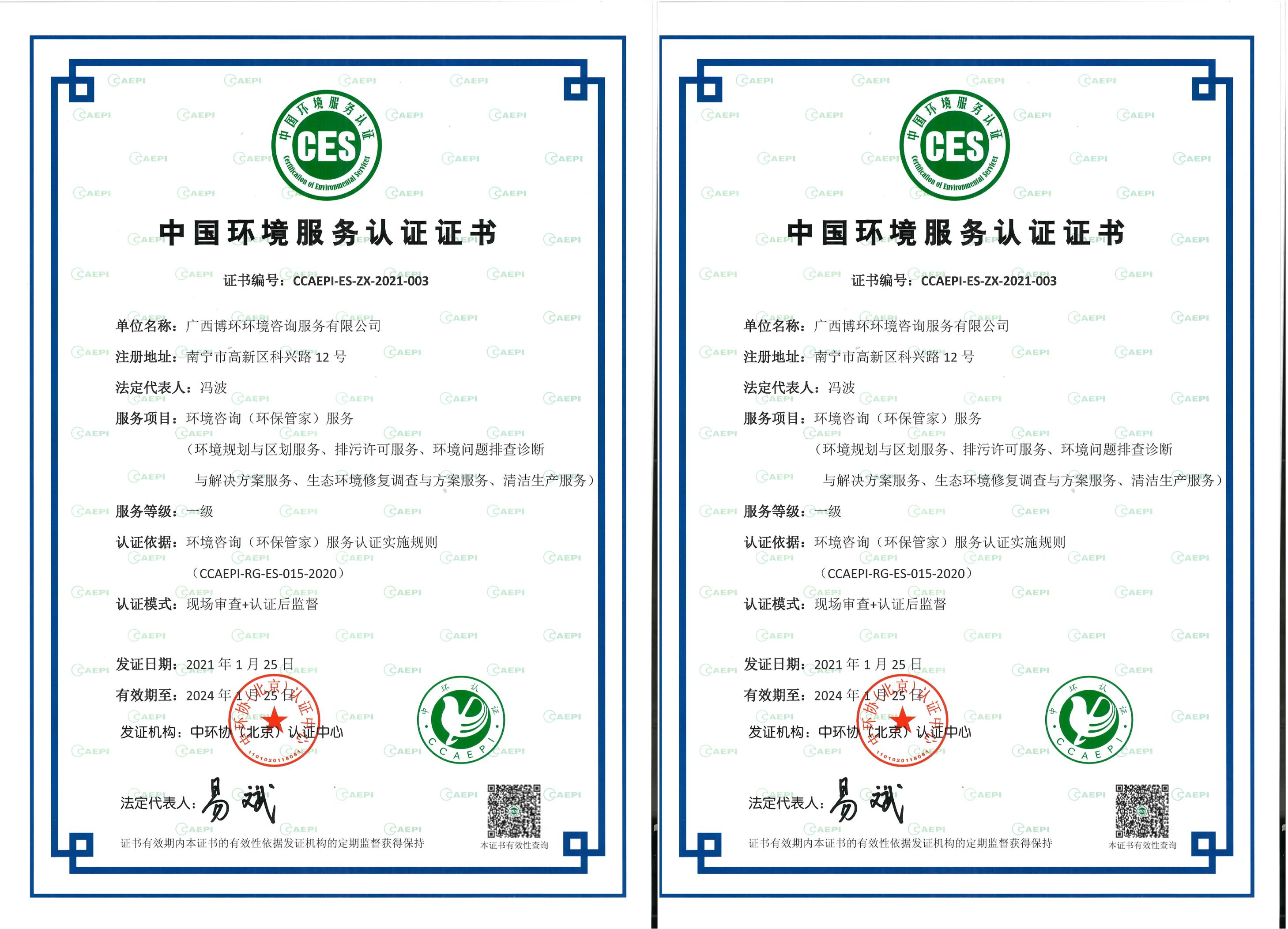 環(huán)境咨詢(環(huán)保管家)服務(wù)一級認證證書 、環(huán)保工程專業(yè)承包叁級證書